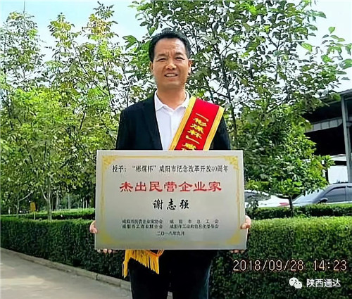 热烈祝贺陕西通达钢铁有限公司董事长谢志强获咸阳市“杰出民营企业家”荣誉称号2018年9月28日上午,由咸阳市民营企业家协会、咸阳市总工会、咸阳市工商业联合会、咸阳市工业和信息化委员会主办,彬县煤炭有限责任公司承办的咸阳市纪念改革开放40周年“彬煤杯”杰出民营企业家暨优秀民营企业家表彰大会在美丽豪酒店隆重举行。2018年9月28日上午,由咸阳市民营企业家协会、咸阳市总工会、咸阳市工商业联合会、咸阳市工业和信息化委员会主办,彬县煤炭有限责任公司承办的咸阳市纪念改革开放40周年“彬煤杯”杰出民营企业家暨优秀民营企业家表彰大会在美丽豪酒店隆重举行。